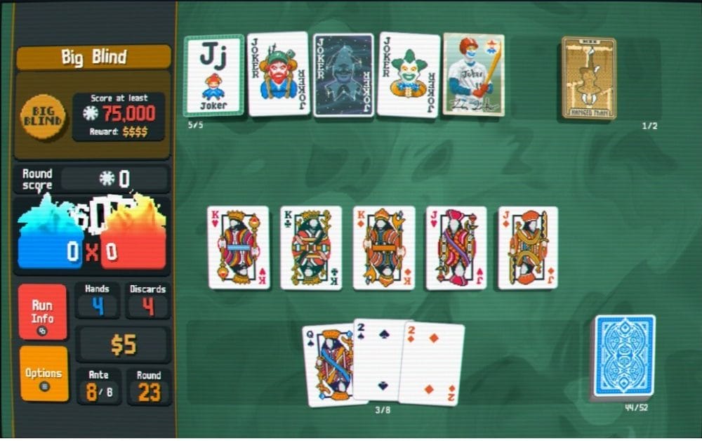 Balatro is an indie, deck builder, roguelite where you win chips by playing poker hands. Strickly speaking you don’t play the jokers in Balatro but they are a fundamental part of the gameplay experience.
