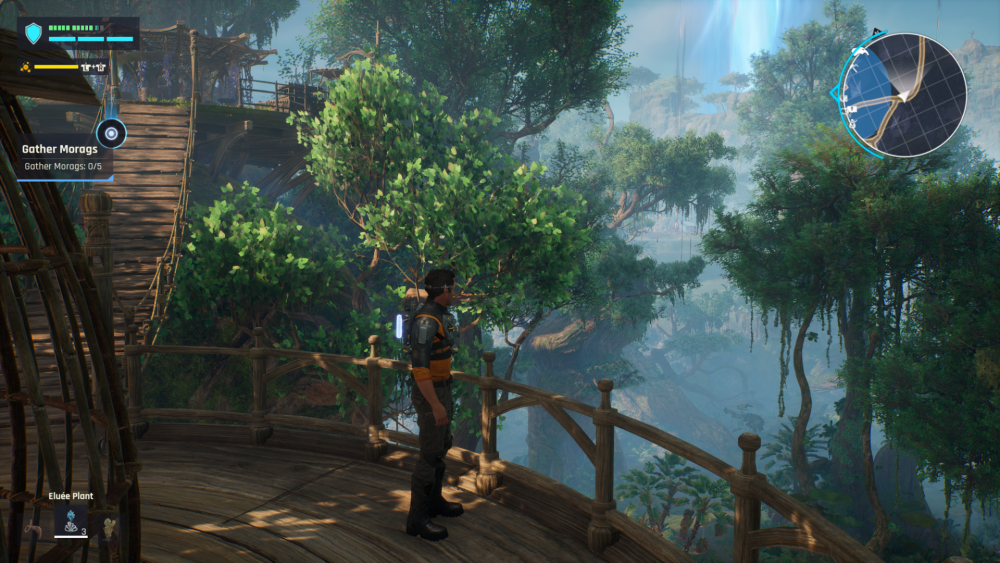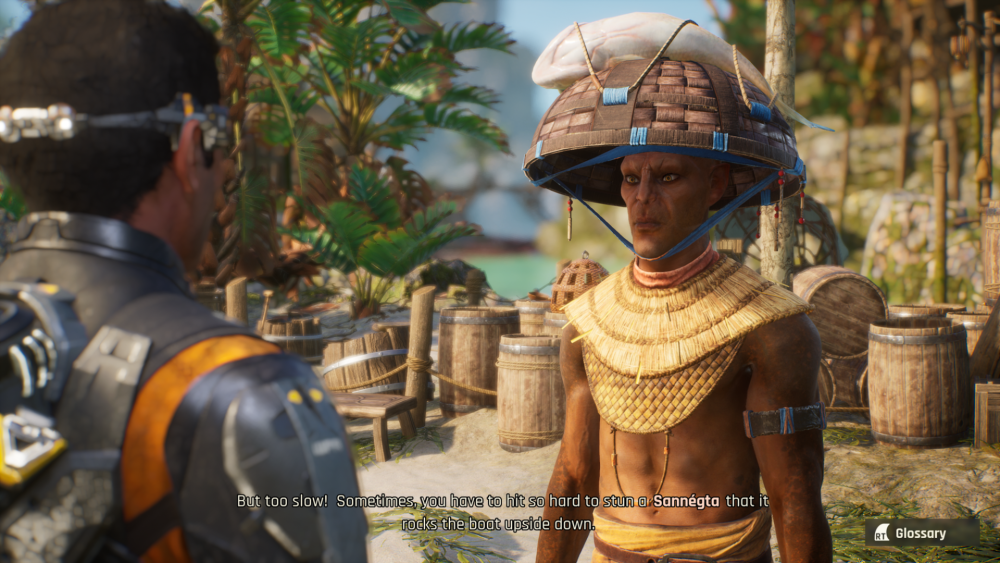 As I mentioned earlier, the other main piece of gameplay is the traversal. There are plenty of portals spread about the world to use for fast travel and after you complete the first village’s questline you will get a Galenta, a giant….i’m not even gonna pretend to attempt to explain what kind of animal it looks like, that you can fly around on. But what you will be doing most of the time is using your jetpack. Whether its during gunfights when you can jump and hover to shoot and get an angle advantage or gliding around the map it I must say it’s quite fun and something not really seen in gaming to the degree it is here since Just Cause 4.