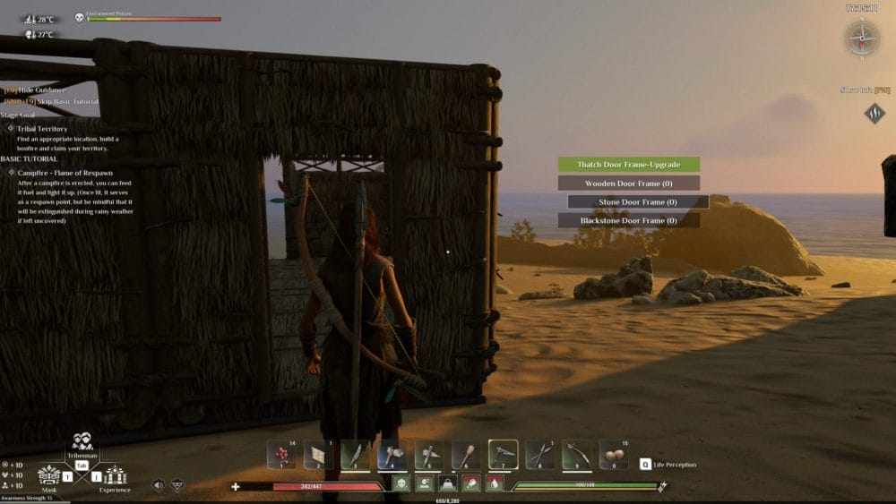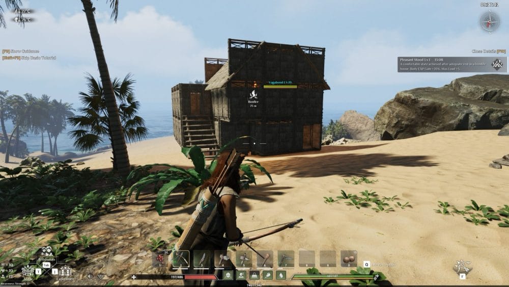 It didn’t take long for me to get to the point of crafting my own house on the beach. The crafting user interface could use some tweaking. Building was such a solid fun experience, my issue however is that each material I need, needs to be added to my quick use bar. I don’t have to do that, but the alternative is going in the the inventory menu, shifting through arrows, potions, and meats to get to the roof icon that I need to equip.