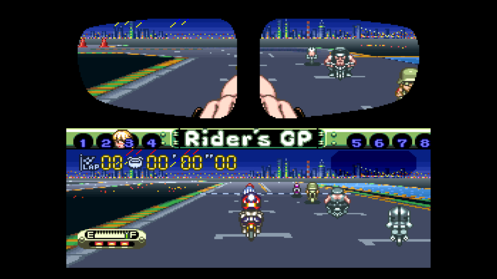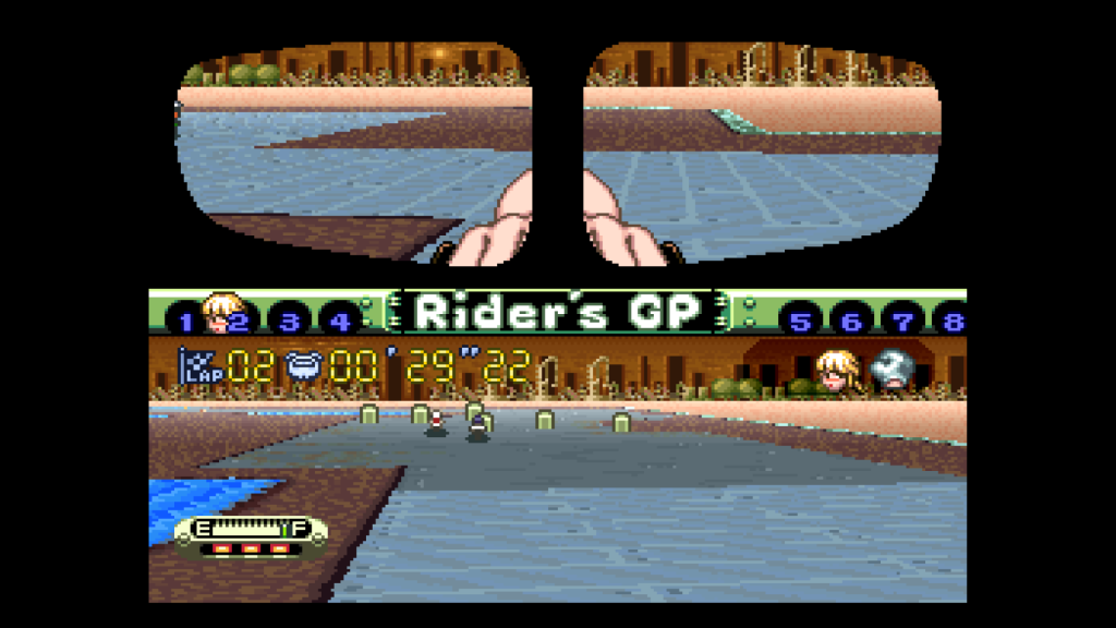 As with other Super Famicom game ports, this one comes with some special options. One particularly handy feature is the rewind option in the menu, perfect for those moments when you mess up during a race. I may or may not have relied on this feature quite heavily…