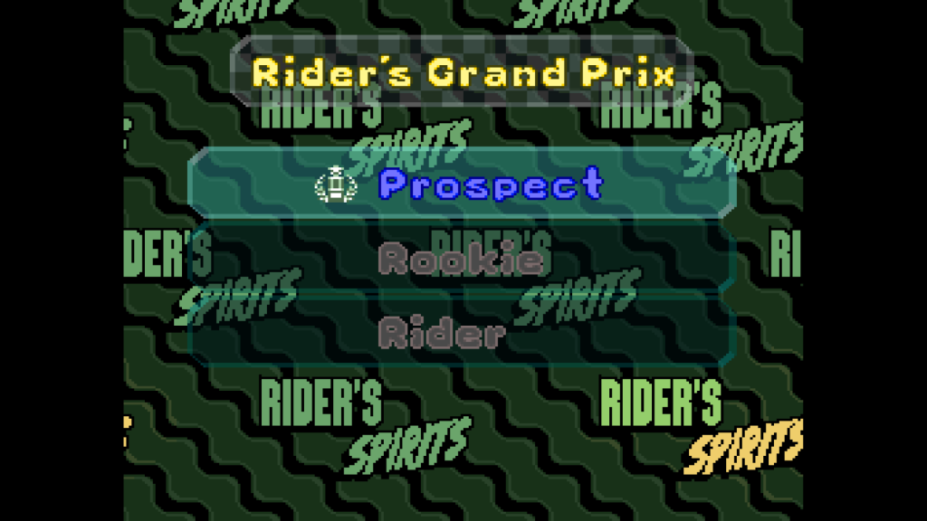 Rider’s Spirits is a port of the Super Famicom racing game Bike Daisuki! Hashiriya Kon released only in Japan in 1994. Even back in 1994 this game was considered a Super Mario Kart racing clone. I kind of have to agree with that analysis. Mario Kart just does it a bit better.