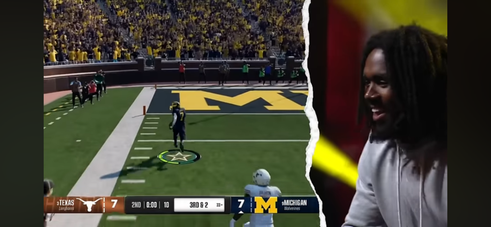 The next game we also see Donovan Edwards play as Michigan and Bordeaux plays as Penn State. Donovan comments on how real and amazing the presentation is. We see Donovan jump out to a big lead and wins this game as well. He noted he saw play he saw Penn State use in their bowl, is used by Bordeaux in game.