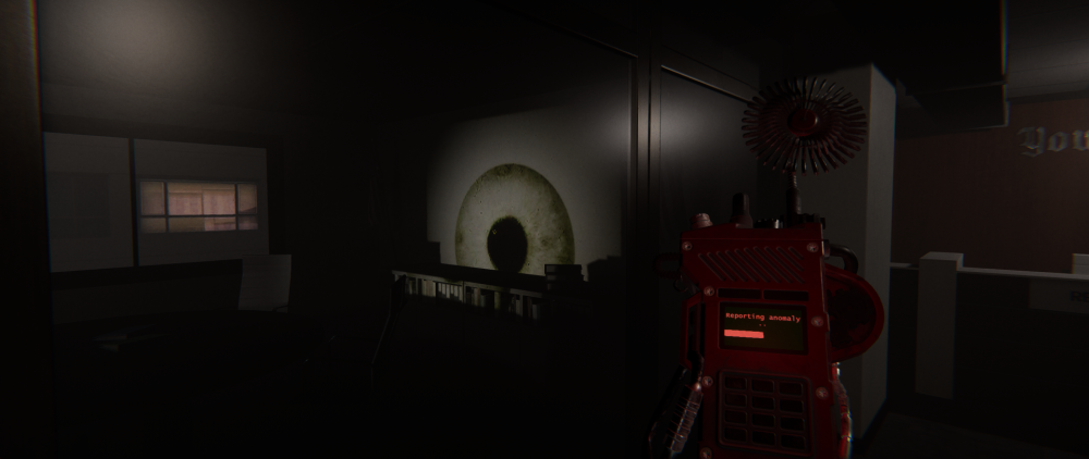 What exactly is an observational horror experience? It’s spot the difference, but spooky. You walk through the level taking in every detail. You get into an elevator and the doors close. Ding! You are back where you started but something feels different. It could be something small like a chair facing a different way or the giant eye on the projector screen that I swear wasn't there before. Once you think you have found the anomaly, mark it using the anomaly detector. Now head for the elevator; if you get it right you advance to the next floor and try to find the next anomaly. If you get it wrong, you start again at 0. I must have been doing pretty badly as the game decided to take me to the second level after only finding 3 of the 22 anomalies in the first level. I couldn't find any in the second level, so after 20 minutes, I got fed up and turned it off.
