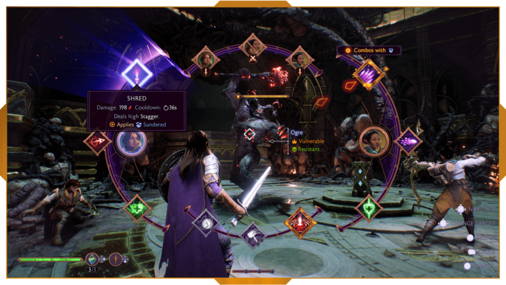 Some Abilities feature buffs or debuffs to aid your fight. The Dev Journal explains, “For example, Davrin has the Heroic Strike Ability which applies the Overwhelmed debuff to enemies. This will increase the enemies' Stagger and make it easier for Rook to perform a Takedown. There are also Area of Effect Abilities to help the party defeat large groups of enemies. Controlling the field of battle is a key consideration in Dragon Age: The Veilguard. Players will need to consider which buffs/debuffs or crowd control Abilities will work best for each situation.” (Dev Journal, Par. 11)