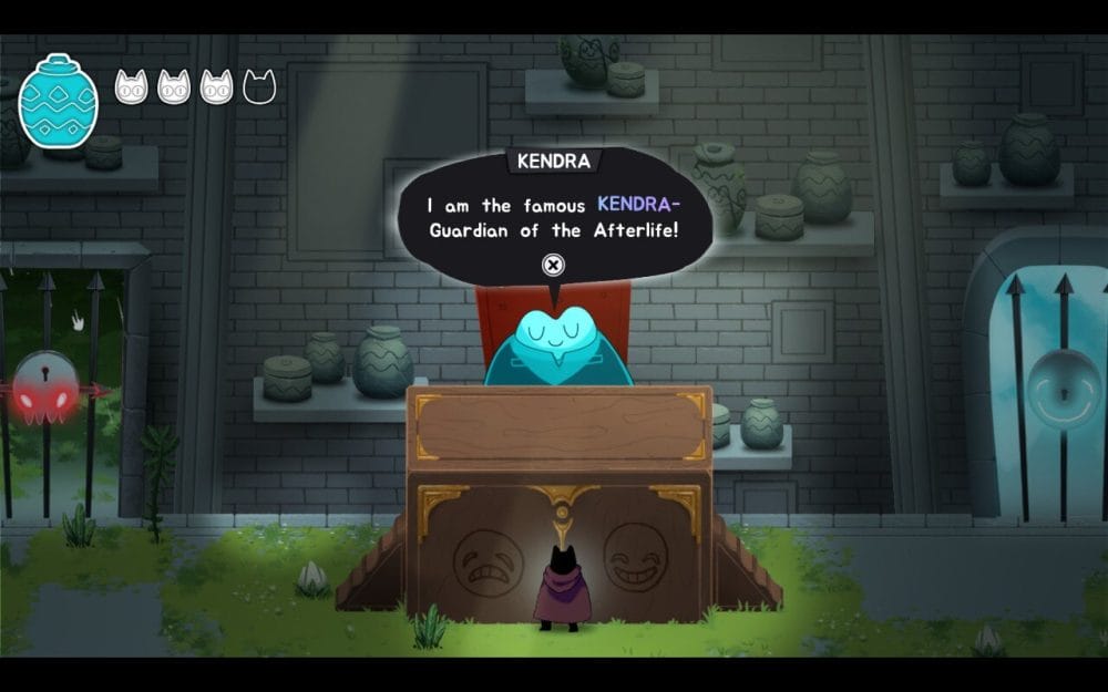 You play as Pluto, a cat who has unfortunately died and wakes up in the afterlife. After accidentally angering Kendra, the afterlife guardian, you are banished outside the palace and sentenced to clean for the rest of eternity.