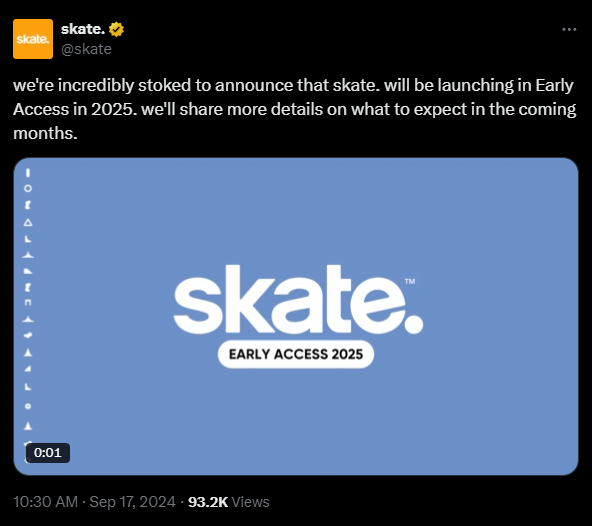 There hasn’t been much more information since the announcement was made. Still waiting for dates of when early access will start and when console playtest will begin. Per Skate’s Twitter/X, more details are to come in the next months. However, for anyone interested in getting into the early access or possible playtest, sign up on “Skate Insider”.