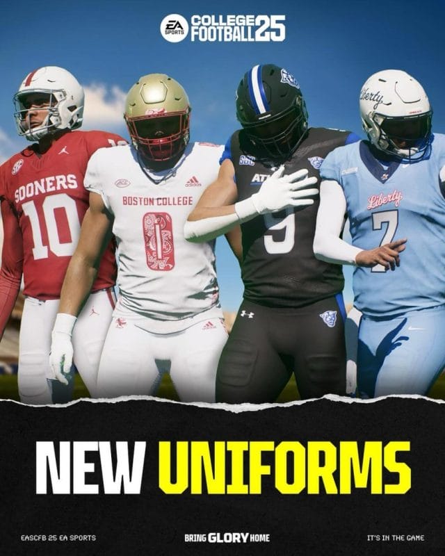 What’s a college football update without new uniforms! Several schools have received new uniform with this update. schools like Oklahoma, Liberty, Boston College, Jacksonville State, Northern Illinois and several others. Once again EA is keeping up with their word to make sure the game is updated and issues being resolved. To get the full breakdown of everything that was added, tuned, correction made in this update go here.