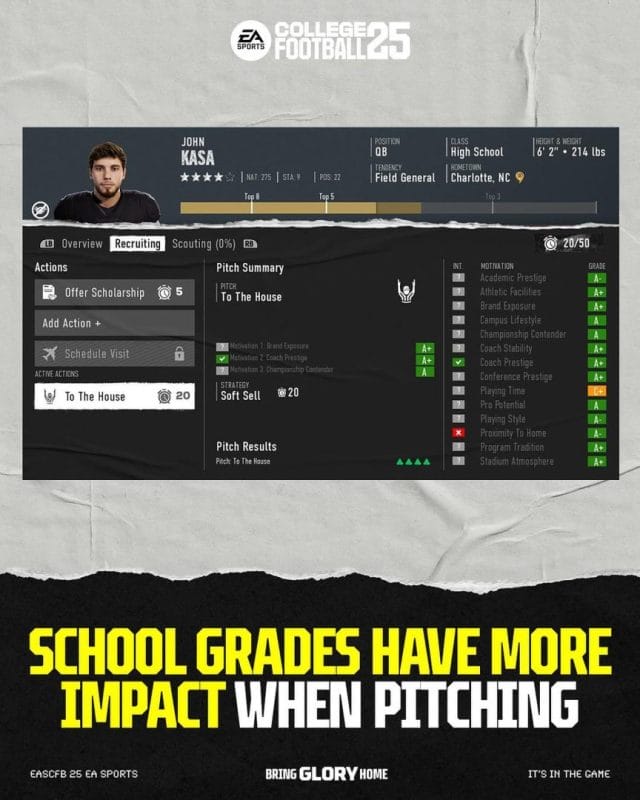 Updates were made in dynasty where school grades will have more impact when making recruiting pitches. They also updated crowd themes for some schools.
