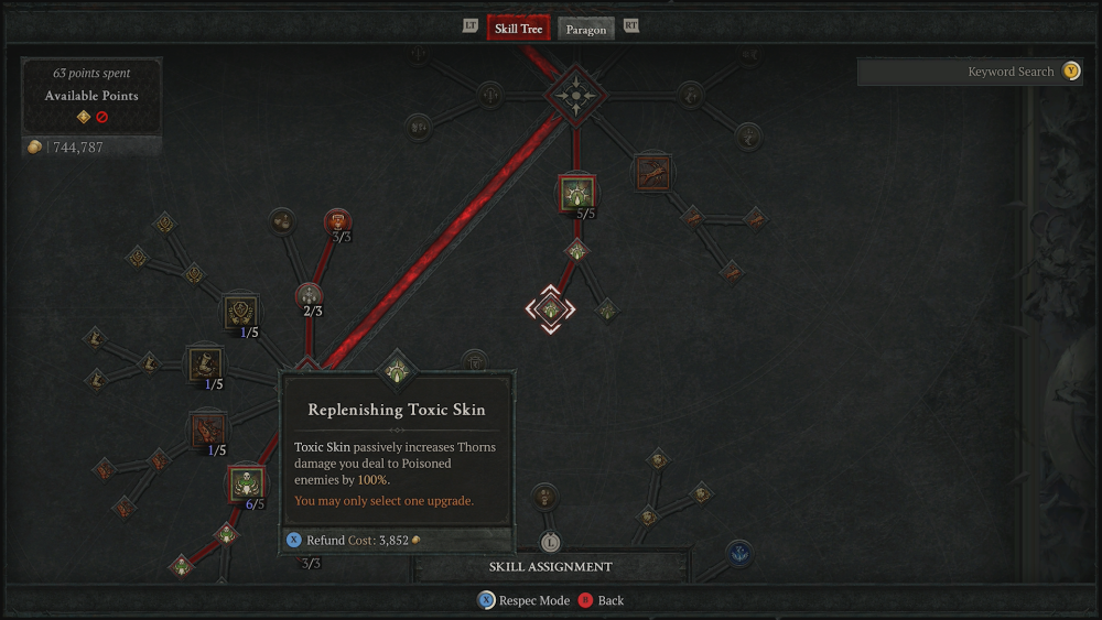 For the focus skill I have gone with Toxic Skin. Toxic skin covers you in toxic sludge that poisons enemies when they attack you. The main reason I use Toxic skin is a get out of jail free card when I'm surrounded. Not only does Toxic Skin apply poison but when activated you become Unhindered, which means you can pass through enemies and your movement speed is not affected.