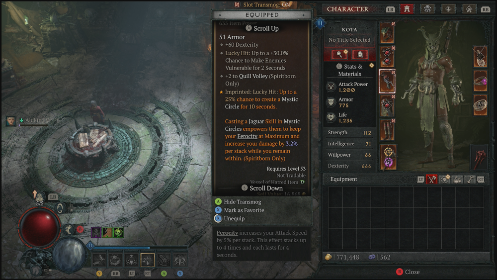 The last thing that makes this build special is the Mystic Circles. They are a new ability that is tied to gear pieces. There is a 25% chance an attack will trigger a Mystic Circle. When standing inside the circle something will happen. For example, casting any Jaguar skill inside Mystic Circle empowers it to keep your ferocity at maximum and increase damage. I'm currently running 3. Two Centipede and one Jaguar but remember that all my skills are Centipede. So, my Jaguar skill counts as both Jaguar and Centipede so I'm getting double use of my Mystic Circles.