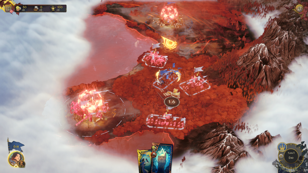 Your heroes have cards they can use for magical abilities that are used for various actions. Some are used on the world map or management screens, like building a special structure at a settlement that produces a unique unit you can then recruit, or a spell that let’s your army see hidden enemies for several turns. Others can be used in battle, buffing your units or damaging your enemy’s troops. Battle Cards recharge as the battle plays out, while Recruitment and Strategy Cards can be used once per turn.