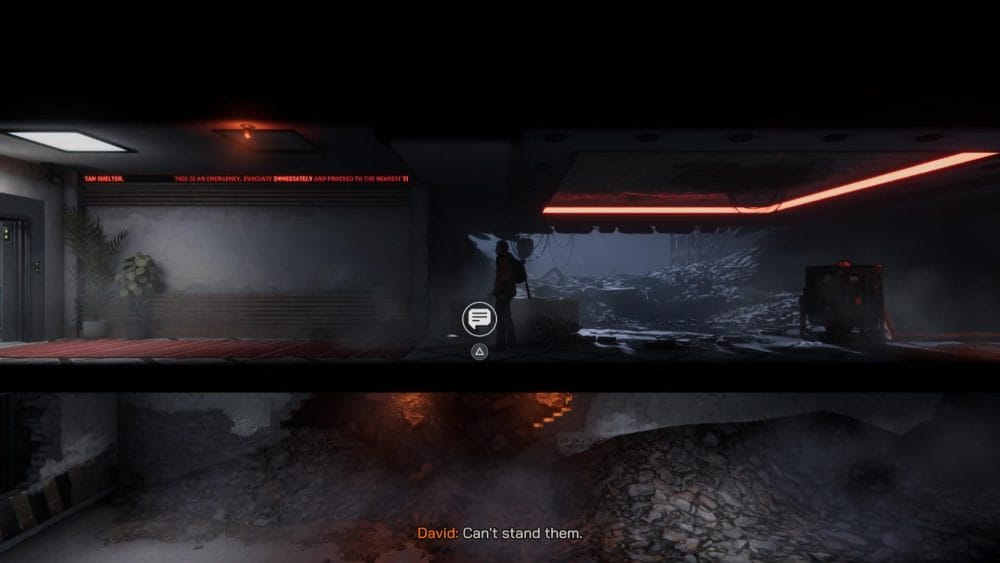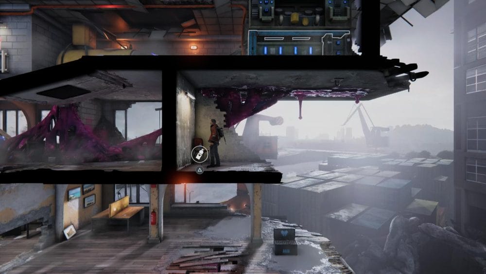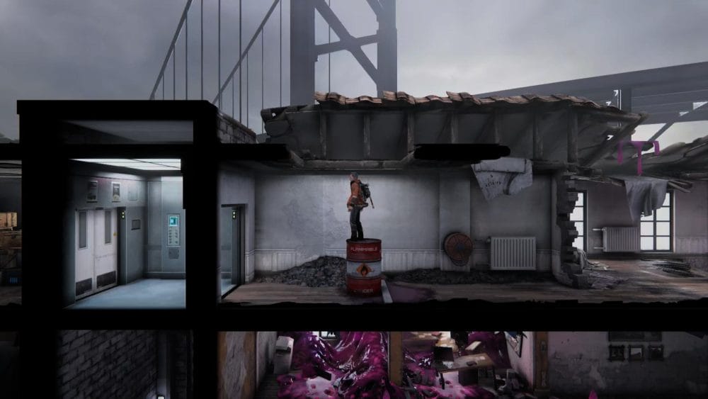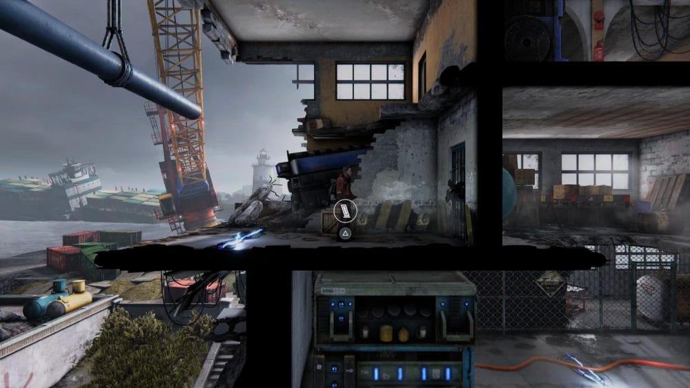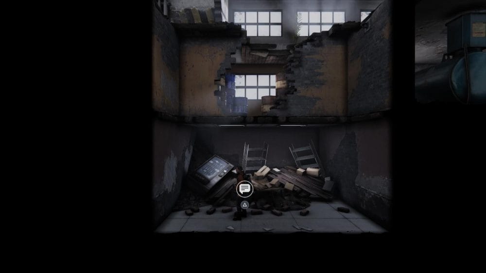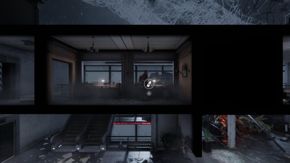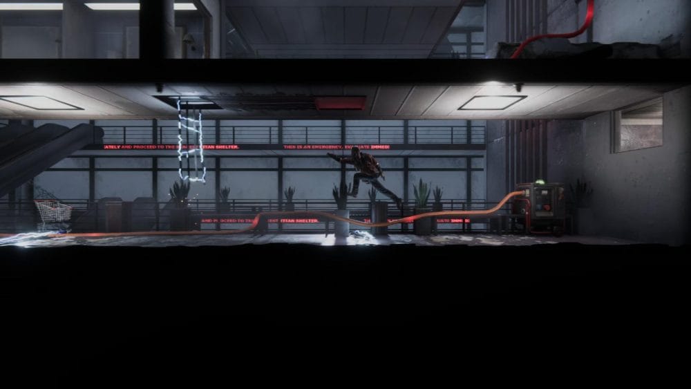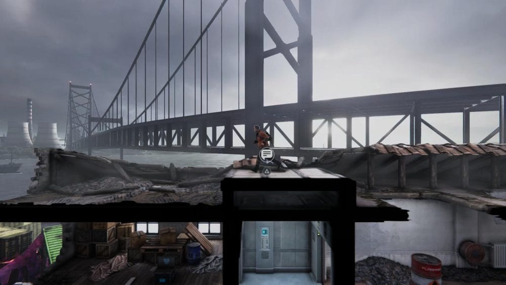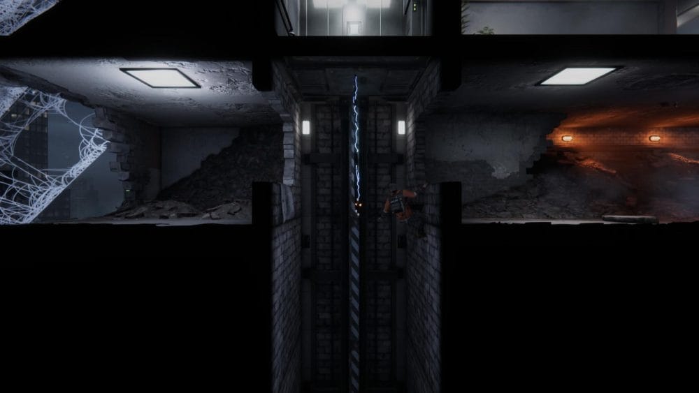 Clip 3 – Break through the floor next to the generator near to where you found the last collectible. Continue on the linear path and hop across the elevator shaft.