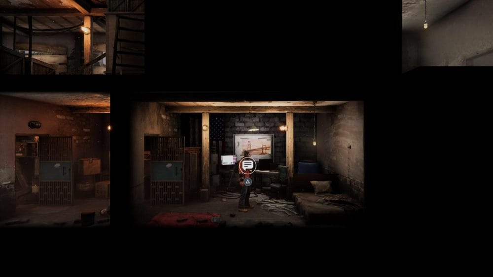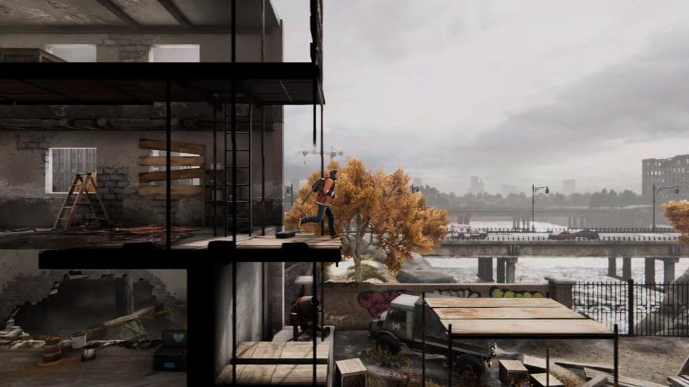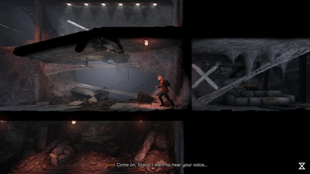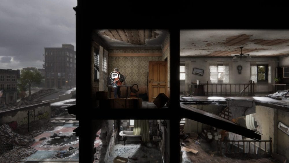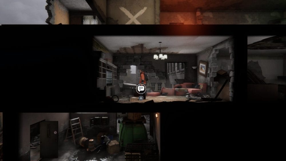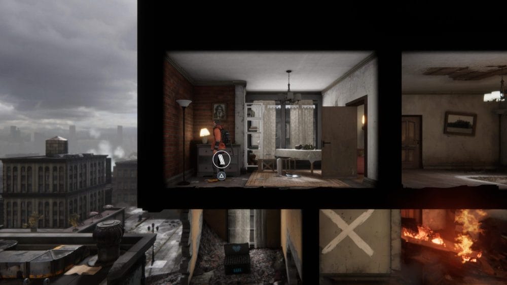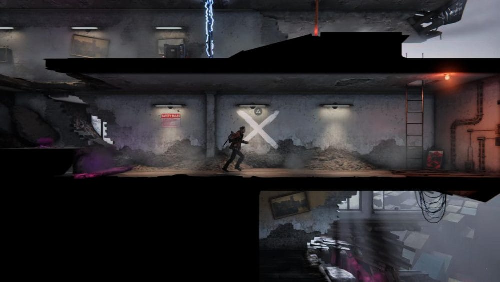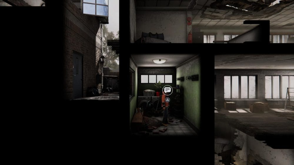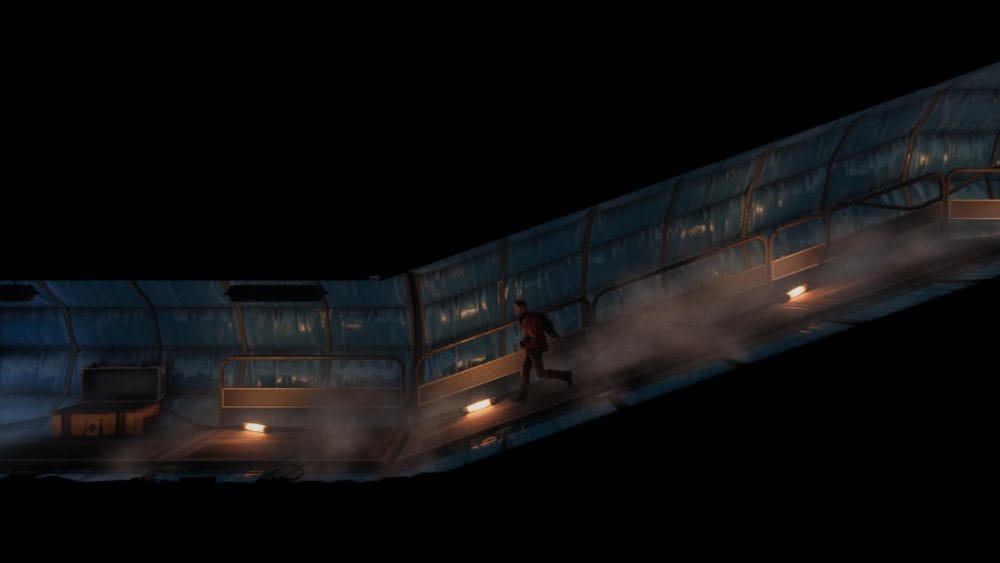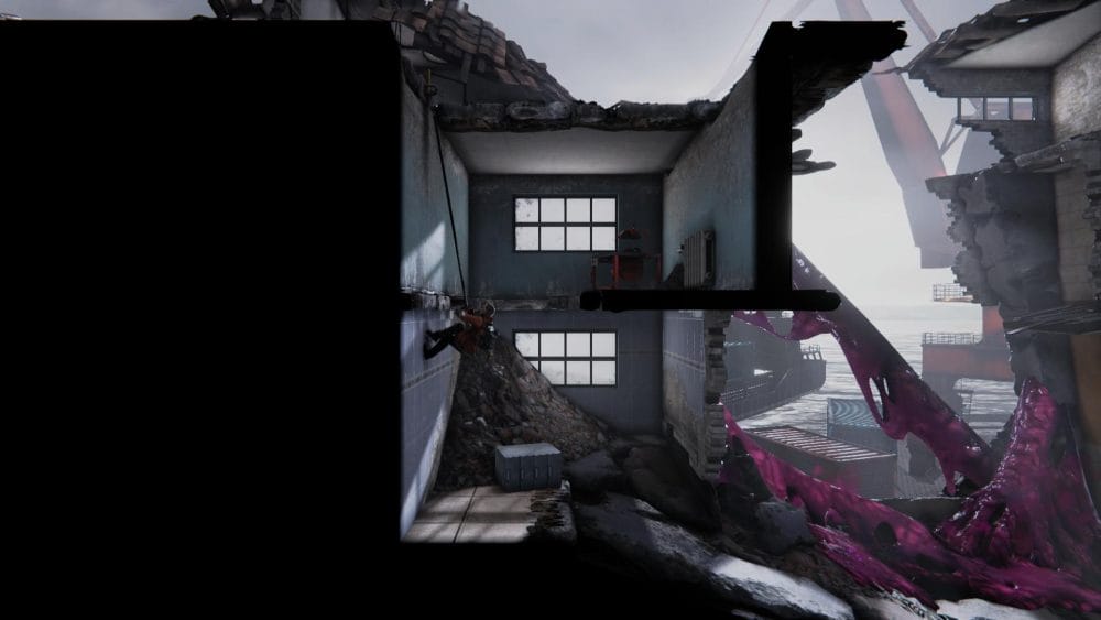 Clip 3 – Break through the floor next to the generator near to where you found the last collectible. Continue on the linear path and hop across the elevator shaft.