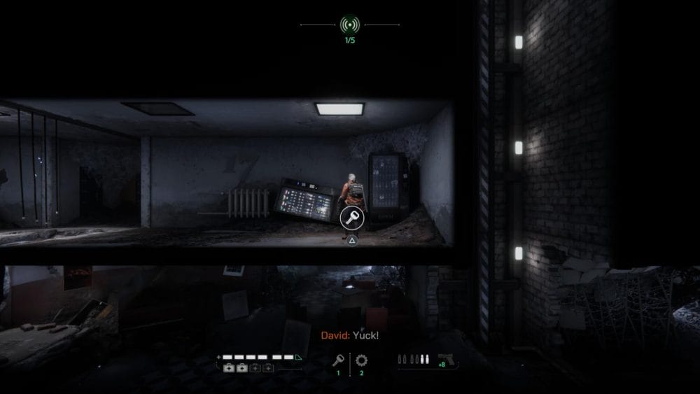 Throughout the crumbling concrete jungle there are three different collectibles and upgrades to look out for: intel logs, bottles of water, and pistol magazine extensions. Every two water bottles gives the player protagonist David another hit point, while each magazine extension let’s his pistol load one extra round. The intel logs come in two forms, text files revealing more of the game’s story, and datafiles for many of the Monsterverse’s colossal kaiju.