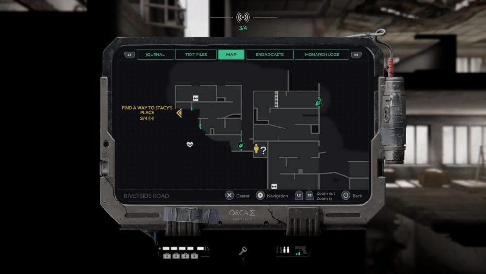 Jump down and crawl through the gap to the right to find the intel log in this backroom.