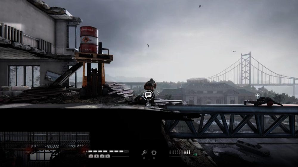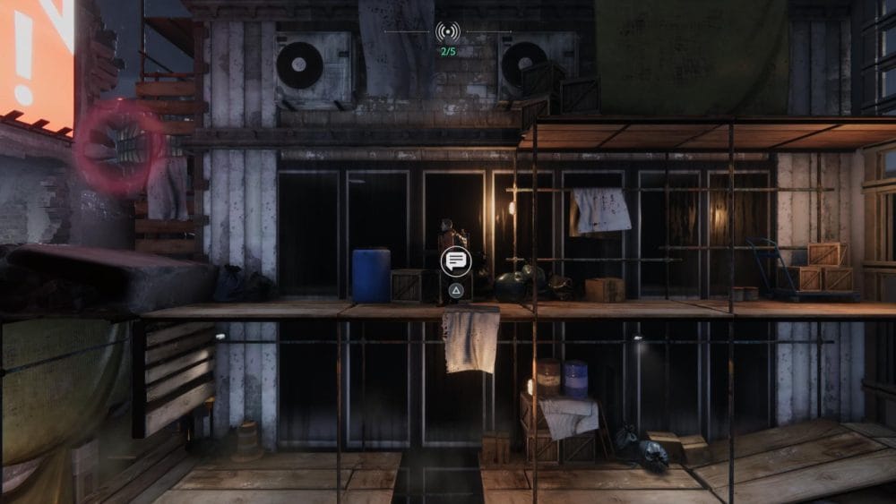 Intercepted Hyenas Message – From the start of the area, head right and go under the scaffolding. Take out the two attackers that jump you, and continue to the right into the building.