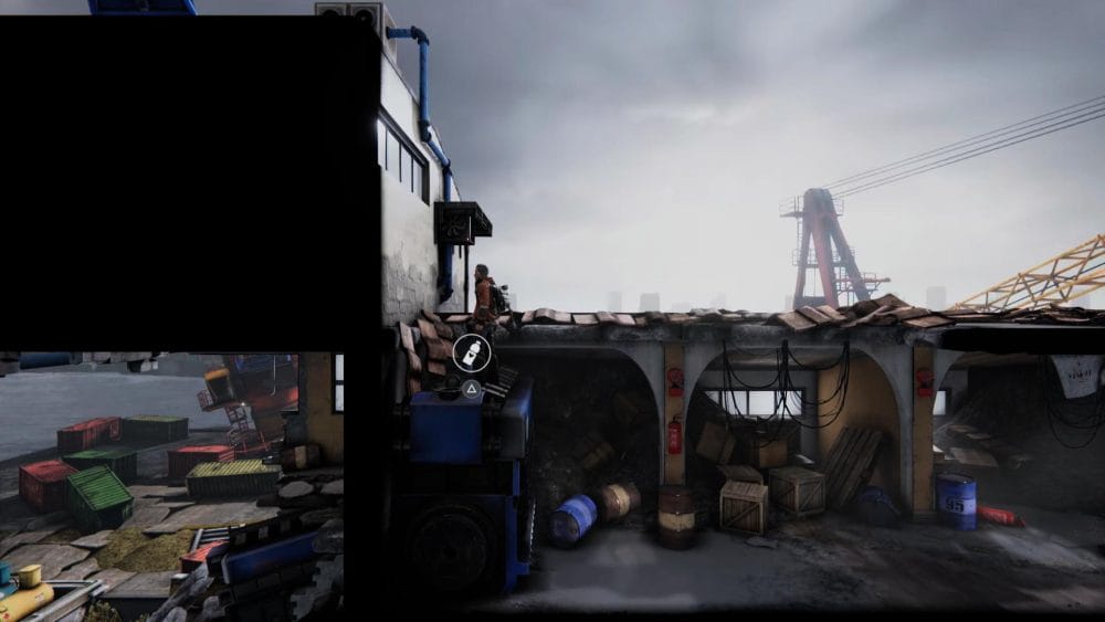Head right and pick up the first gear behind the box you climb to the next floor. Head left through the tunnel and find the second gear by the machinery.