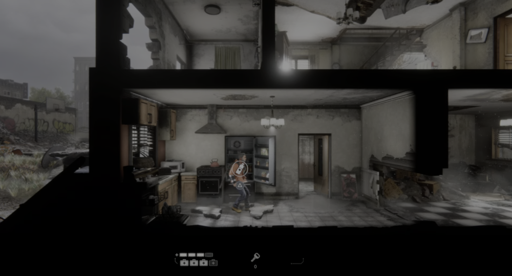 Head back into the building on the left and you’ll be attacked again. Deal with them, and crawl through the hole to the left; the first water bottle is in the fridge.