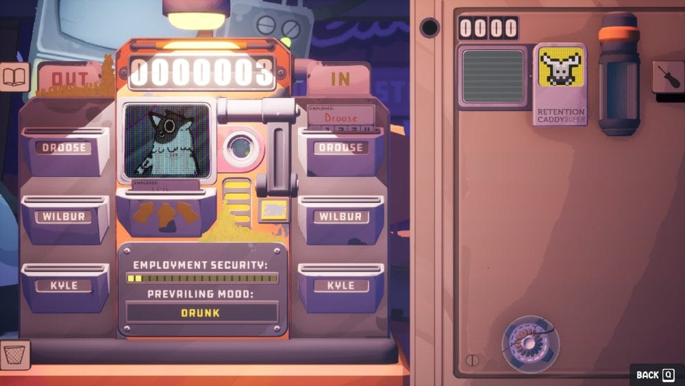 You play as Wilbur, a fox (half fox? half man?) mechanic stationed on an garage in a far flung corner of the galaxy. After firing the corpse of the previous mechanic into space, you are tasked with repairing procedurally generated spaceships to earn enough money to pay your rent. Repairs require using an in-game manual, that you manually flip through to find the instruction for machines or fault finding instructions for each module of the ship. And trust me – much like building your bedroom drawers from IKEA, you are going to need to read the manual.
