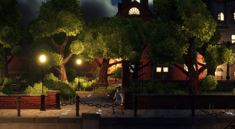 Set in the quintessentially Victorian country town of Rainybrook, you play as a young, gangly boy wearing a deer mask. After saying goodbye to your mother, you set off into the nearby forest to meet up with your best friend, Ella. After a short timelapse, the now teenage duo are separated while out checking their rat traps in the woods. Falling with a collapsing bridge, the masked boy wakes up in an underground cavern and is pursued by a shadowy beast. He successfully escapes, only to pass out on the forest floor, left infected by the twisted monster.