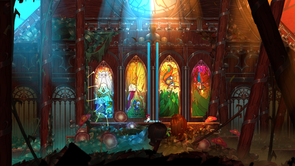 The story is told through visuals in the levels (including one particularly striking stained glass scene), as well as a number of cutscenes. There isn’t any voice acting, or dialogue, in fact, as you might expect, the story is told effectively via the cutscenes and the presence of some beautifully played music, that underscores the events perfectly.