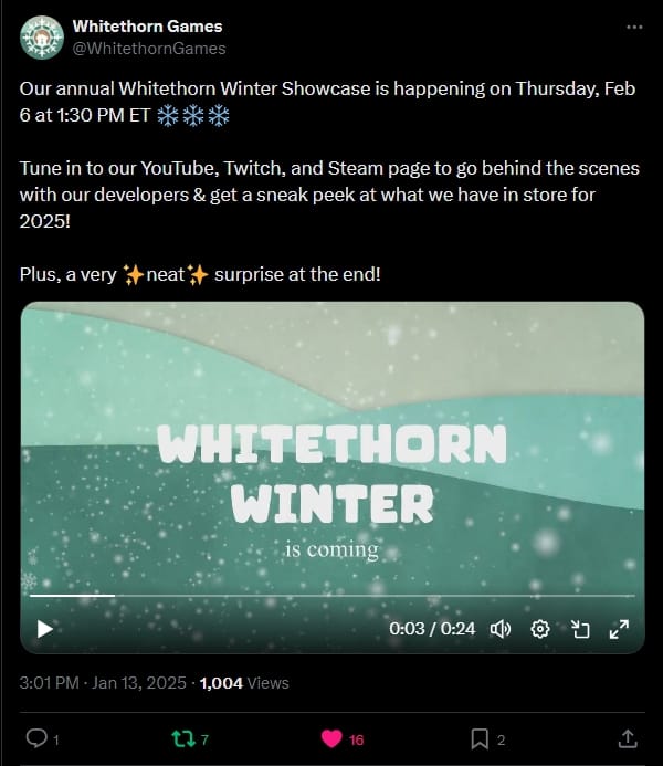 Sounds like Whitethorn Games have a busy 2025 planned, making the Whitethorn Winter 2025 Showcase worth marking on every indie fan’s calendar!