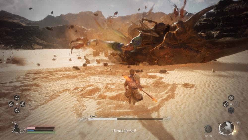 Like most games, bosses like this can take damage from behind. Well, not Fuban. You can only cause damage to his two front claws. Locking on between both claws is essential to winning this fight. You don’t need to unlock and relock on, simply move your right joystick to aim at the different leg that isn’t in the air. It will help you dodge the one leg that is in the air.