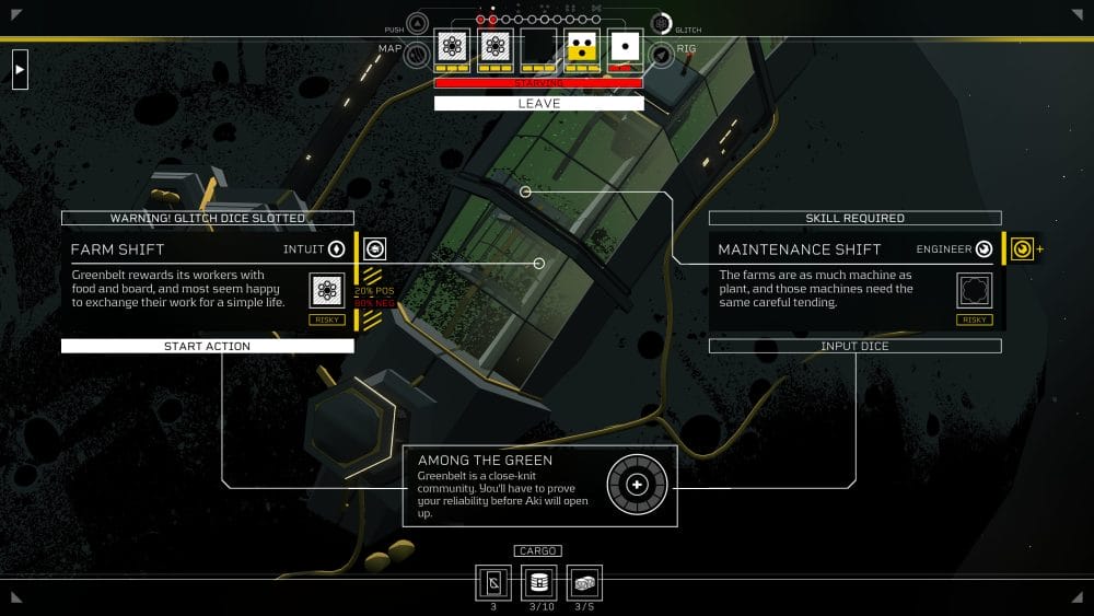 You’ll also find yourself accumulating glitches as the game progresses, making tasks outside of contracts more difficult. These can be cleared by using the glitched dice, which again you’ll need to do wisely as every negative outcome sees you a little closer to failure in the demanding world of the Starward Belt. The whole system made the game feel a bit more desperate than the first, although I can see some people getting slightly frustrated by the fact it can feel less predictable to know when dice will be out of commission.
