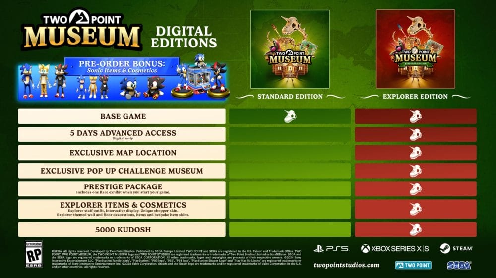 Two Point Museum launches March 4th on PC, PlayStation 5 and Xbox Series S/X. Those who pre-order the Explorers Edition can get the game 5 days early as well as access to many in game items.