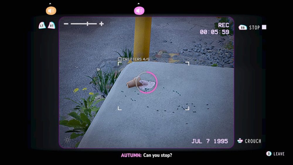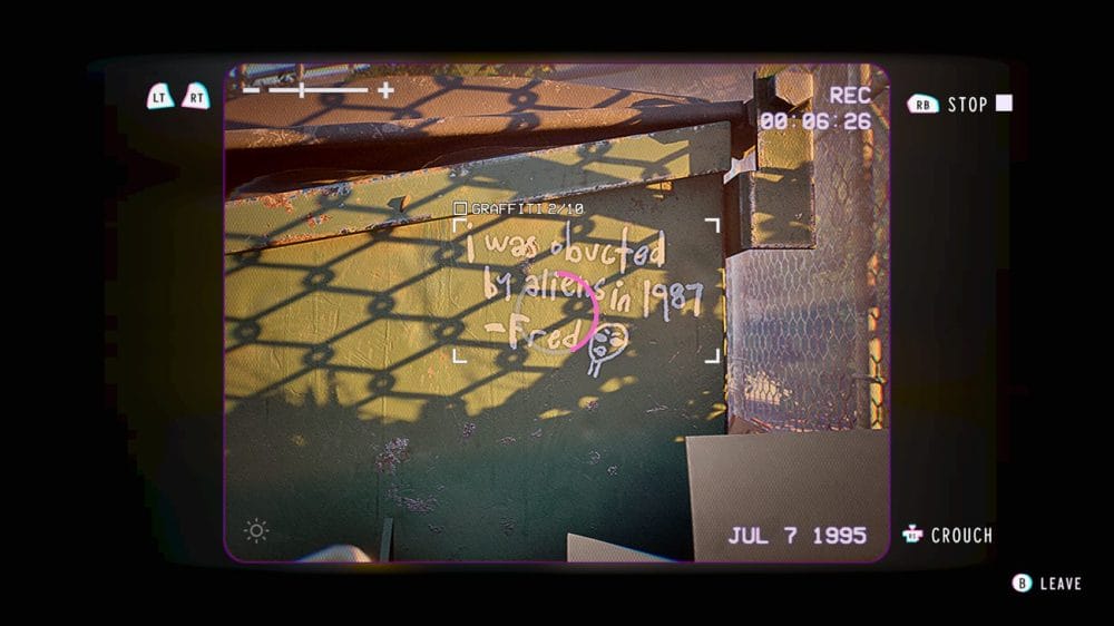 Head back down the ladder to the ground level now and progress the story by recording the story memoirs and talking to the cashier, Autumn. After a few cutscenes head back towards the chain link fence. You likely saw a hole there earlier. Attempt to go through it and watch the cutscene to see a balloon. This is story related and impossible to miss.