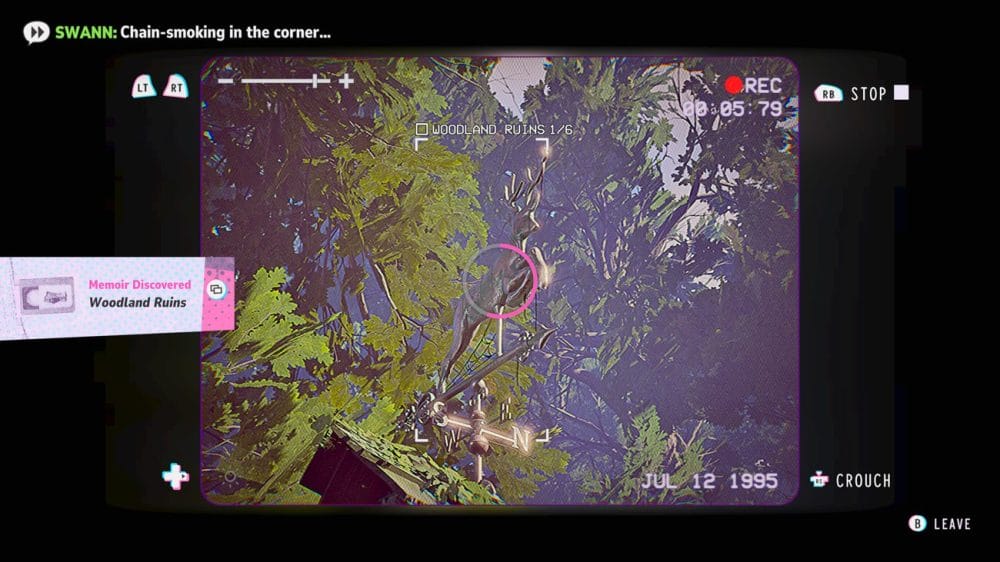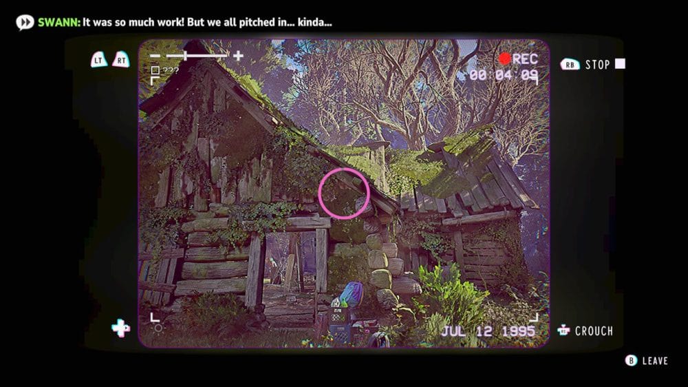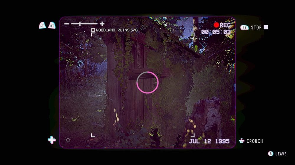 From the chimes walk ever so slightly down the path to find a path that goes to the right around a bush. Head back there to find the outhouse and your last required woodland ruins memoir. Like I said there are a few others around so feel free to collect them if you’d like.