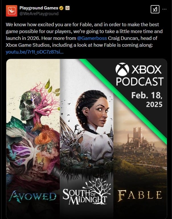 Shortly after the podcast went up, Playground Games themselves took to social media to let Fable fans know what was happening with the next entry in this iconic Xbox franchise.