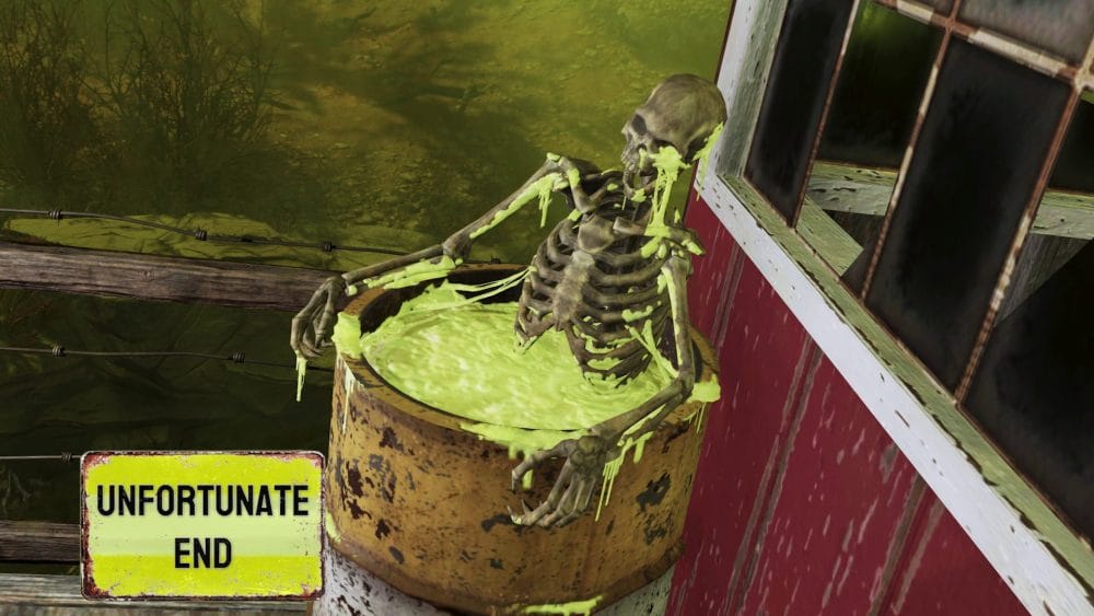 Of course, no Fallout 76 Season would be complete without some themed rewards! Not only will Wastelanders be able to turn themselves into Ghouls, but they will have the opportunity to dress and decorate to match. Hazmat suits (a fashion staple for the season) along with several glowing props will be up for grabs, just be careful what you touch!