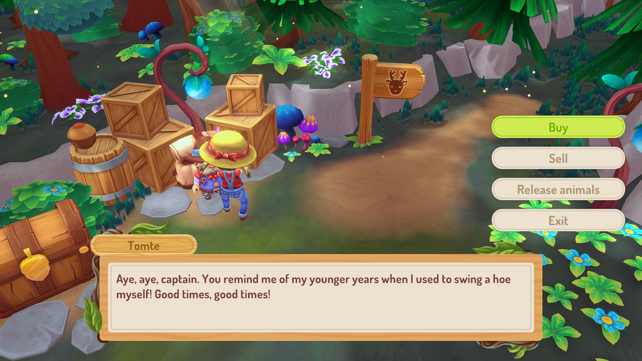 Manage your own shop, and sell your goods to the inhabitants of the island. Each product sells for a different amount of harmony. Some Forest Folk will even try to negotiate the price. Use what you earn to fulfill quests of the Harmony Tree, or buy more seeds or animals from Trader Tomte. Gather resources like wood, stone, and weeds from the island to upgrade buildings, craft tools, and enhance your farm’s infrastructure.
