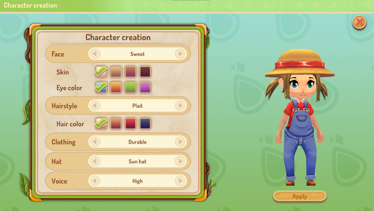 You can also customize your character’s appearance in Sugardew Island. Each attribute has around 3-6 choices. There are no slide bars, or fine tuning. The options are very simple and really work for those who want to just focus on the gameplay itself rather than spending hours adjusting details.