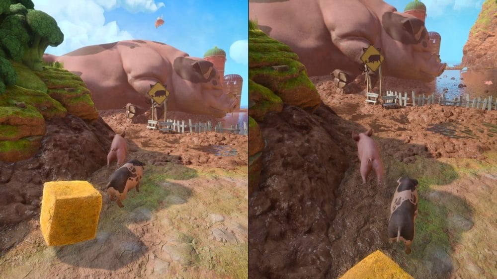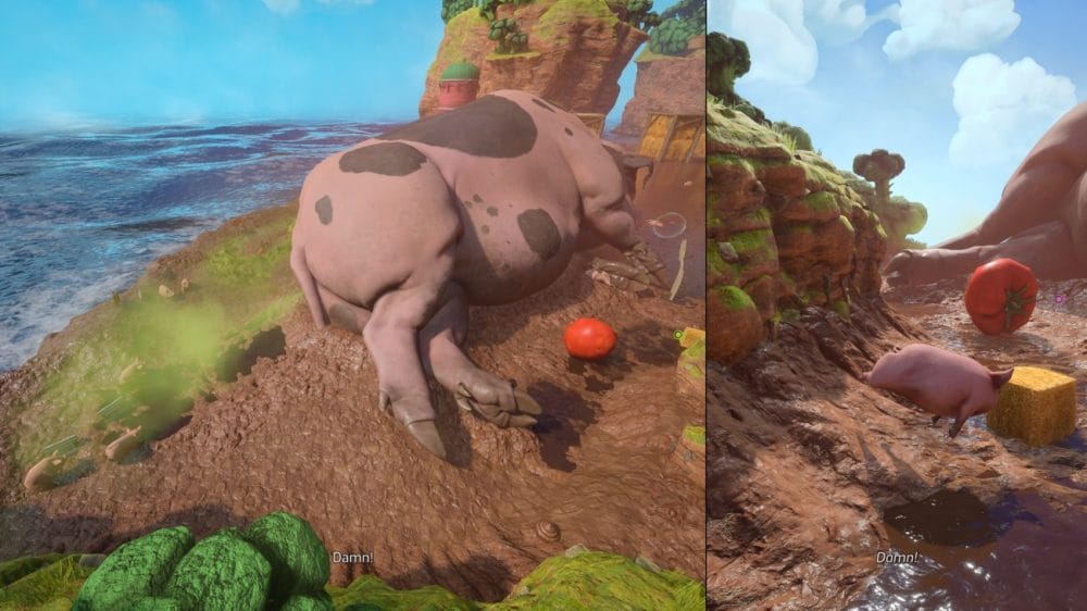 Here you will find a giant hog laying in the mud. Player 1 will want to jump on top of the hog and use its fart ability which will cause the giant hog to, umm...well pass gas. It might smell but you've at least got a new achievement or trophy right?