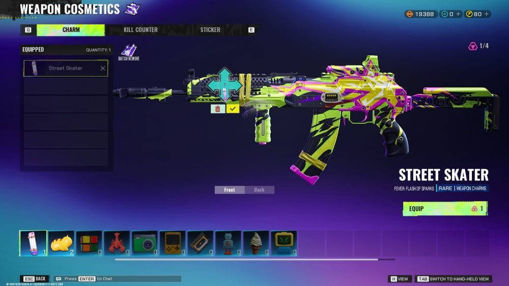 There are 6 primary weapon categories with 12 weapons to choose from, 7 secondary weapons, and two different melee weapons. Fragpunk’s customization is very in depth and gives you a lot of room to have fun with how you customize your guns. You can add a kill counter to your gun, stickers, and charms. While that may sound fairly standard, you are able to apply these features wherever you would like them on the gun.