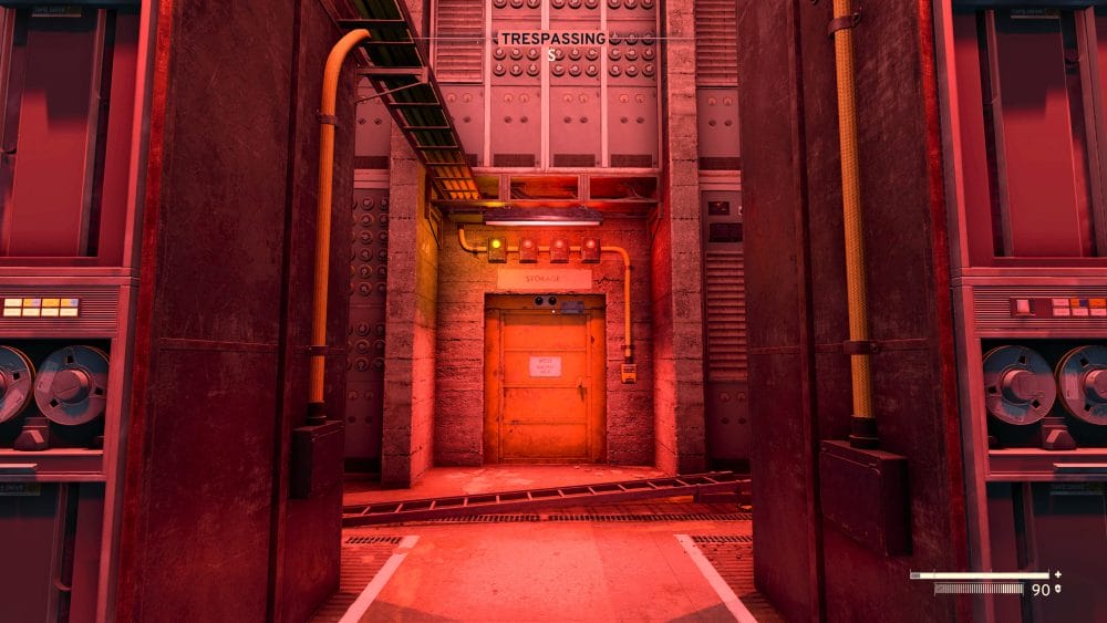Once facing the store room, which is at the bottom of the ladder and stairs, after you’ve placed the battery in the power station, look to the right and search the dead body. He has a Store Room keycard, which you’ll need to get in. But not before you restore power to the doors.