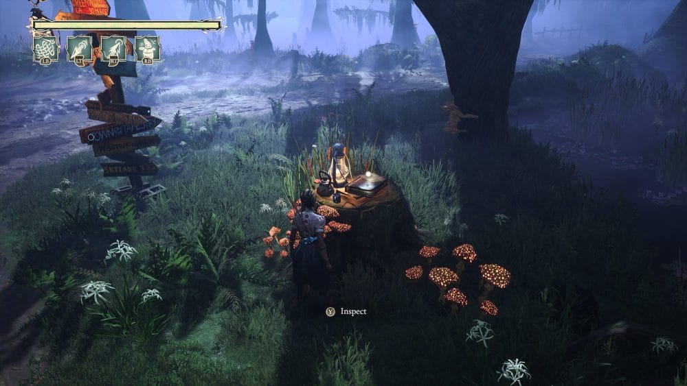 Right from the beginning of the chapter we're grabbing collectibles. Head forward until you get to the crossroads. On a tree stump to the right of the sign post will be the first note.