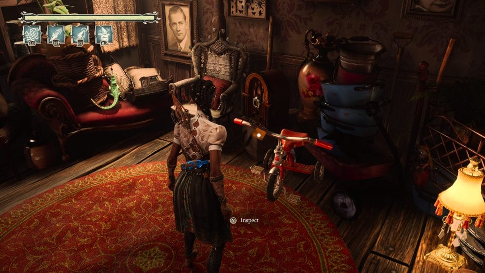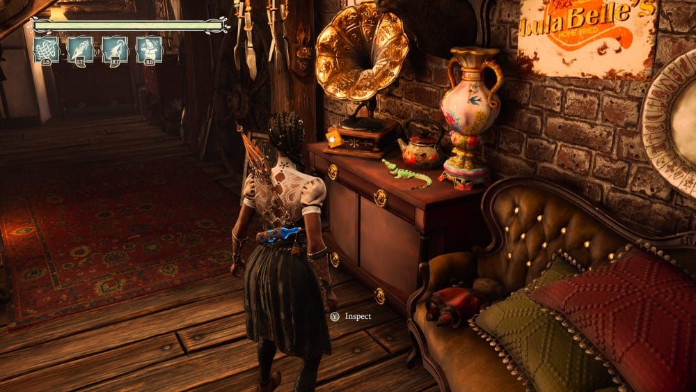 Enter the wagon and walk forward. You will see an old record player with a note attached.