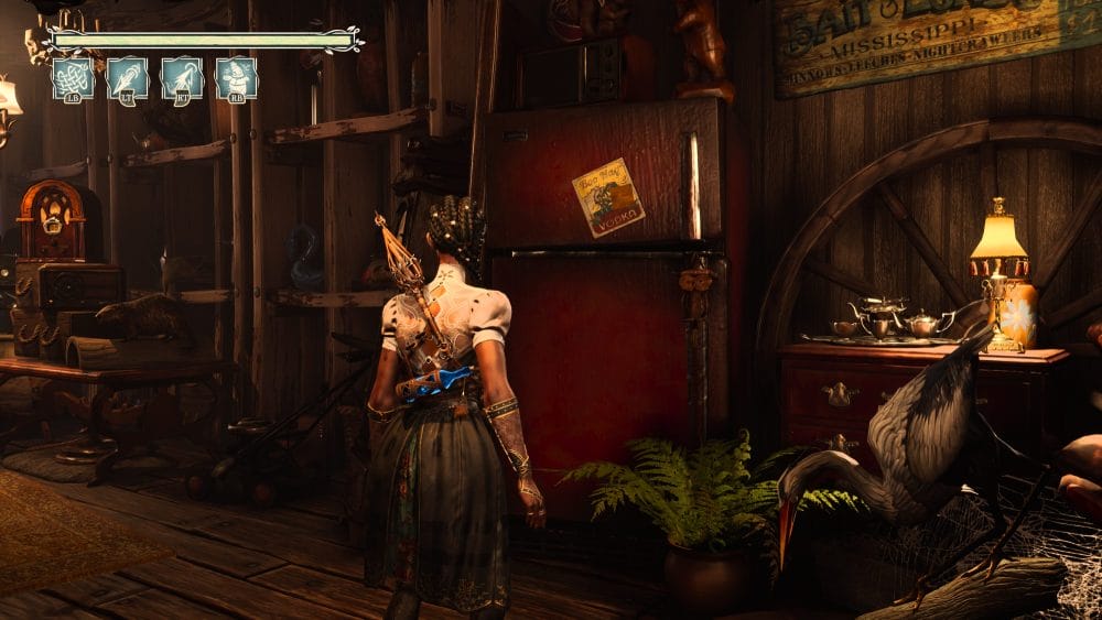 Head back to the main path now and jump down. Follow along and jump across to another section with one of those doors similar to earlier. There will be a note on this door.