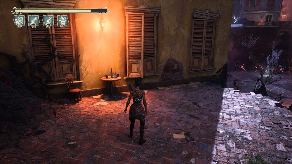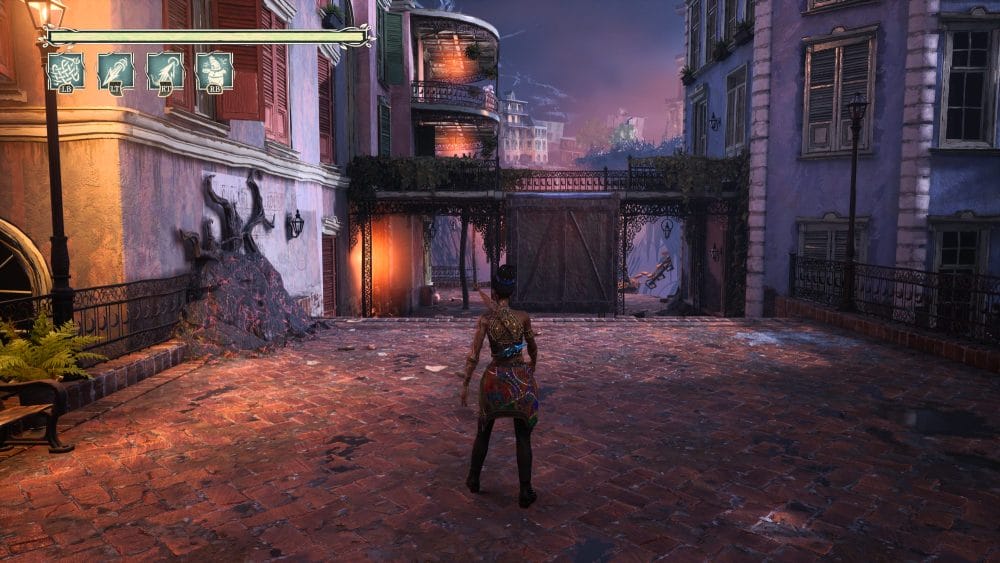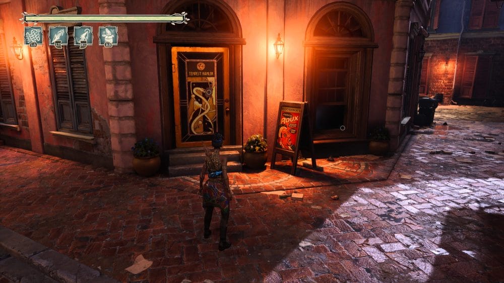 This might be one of the trickier ones in the entire game. Complete the arena battle and continue on up the path. As soon as you go up a very small flight of stairs turn directly around. You will see a roux sign above that you can pull down (I've already pulled it down in the pic below).