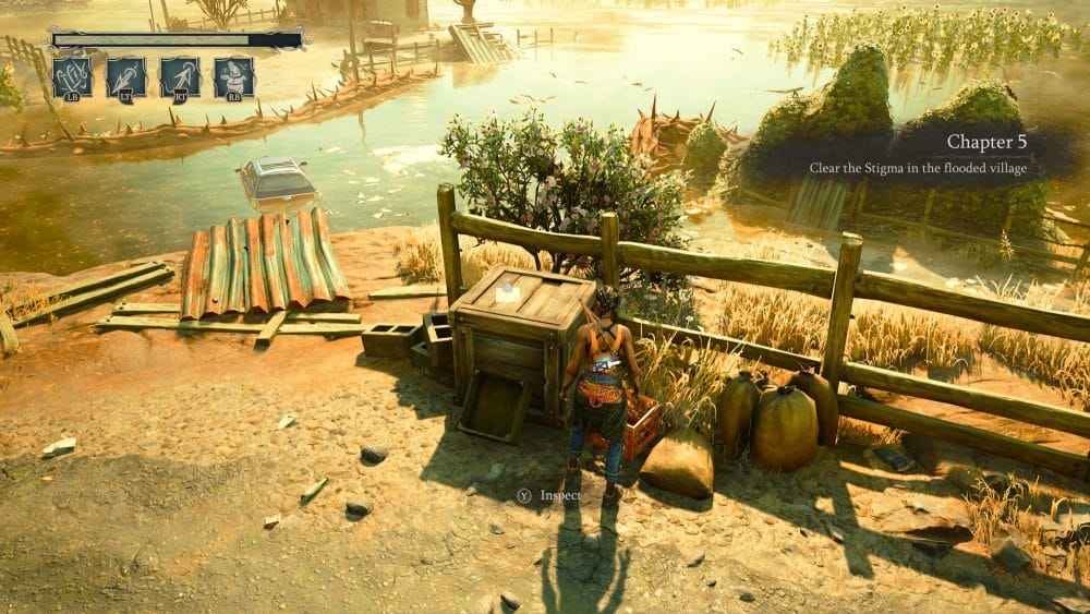 Quite a bit past the last collectible after avoiding some....well shit sprayers, you will reach an old farm (it's part of the main quest). Once here, you will see a large windmill which you can climb. There will be a ghost box you can use to get on top.