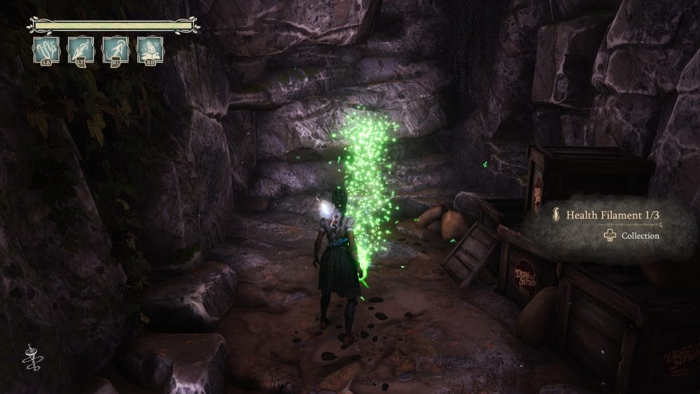 The first health filament is pretty self explanatory as it's pretty much impossible to miss. Hazel will come across it and you will be told what it is and to collect it.