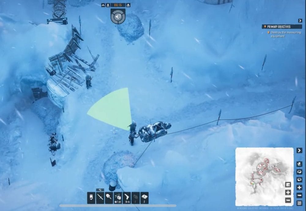 At it’s core the most basic thing you need to understand about Commandos Origins is the enemies view cone. Each enemy will have a view cone that you can see if you use the proper button prompt (this is different for each system). The view cone will have a solid section and a section that is lines.