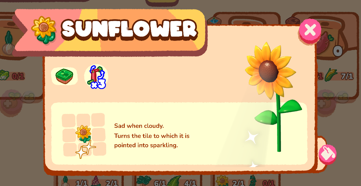 Trade grown plants for seeds, tools and, even unlock new collections. Your currency is plants, so by growing many different kinds, you’ll have more of a chance to buy decor, colors and stickers along with seeds for your pocket garden.