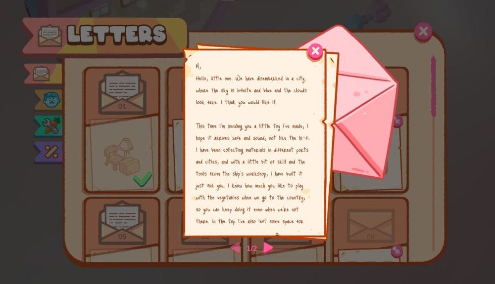 Rather than a storyline of events, Tiny Garden instead shares letters filled with affection and shared dreams from loved ones that share bits of information about your character’s life. Sometimes they come with a few extra pieces of produce, which is a bonus especially when trying to buy a new collection.