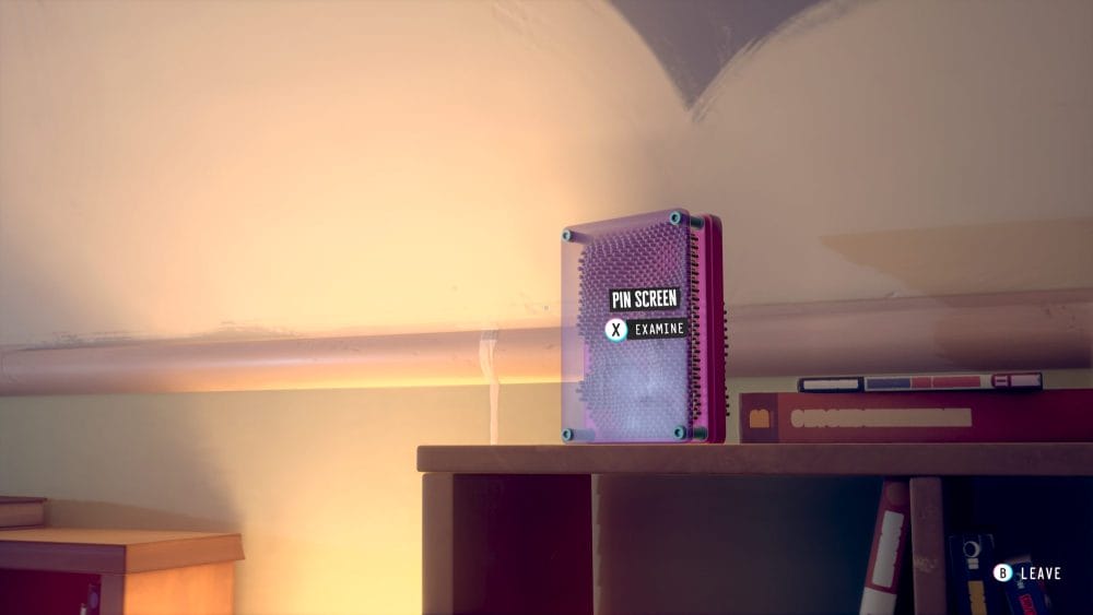 During Scene 3 once you take control of Swann head to the shelving behind her bed. On the top shelf you will see the pin screen. Interact with it and it will give you the option to make 3 different shapes. For the achievement/trophy you actually need to make all 6 shapes with the pin screen. You are probably thinking, but wait there’s only 3 options? You would be correct; however, this also requires you to have done all 3 shapes in Tape 1, Scene 19.