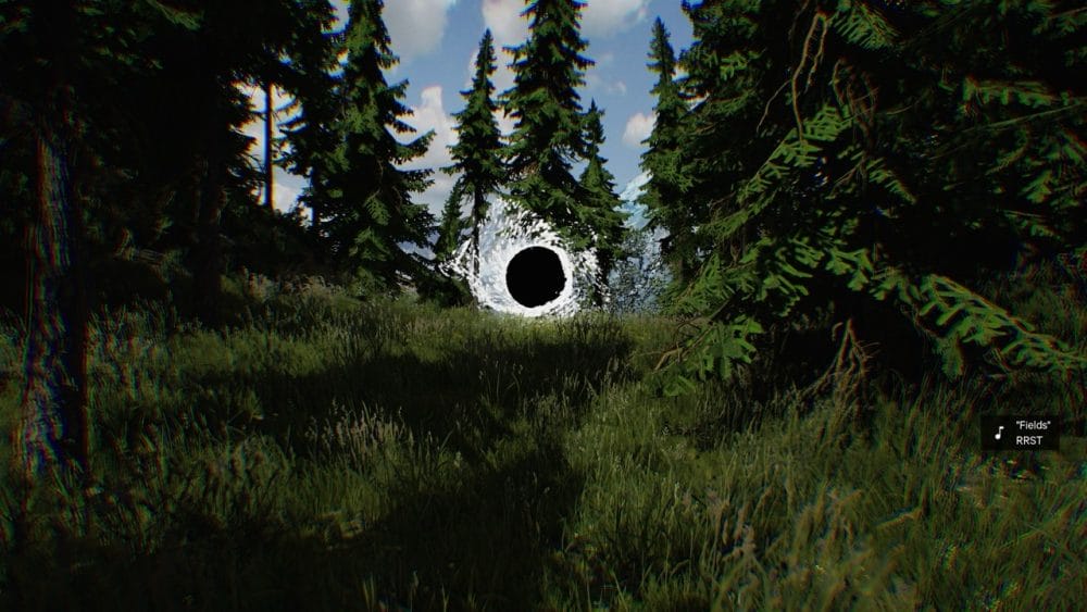 From here, you can walk towards a small bright sphere. Upon approach, you will teleport to another zone, Le Prarion - Chamonix, France. If you turn around and enter the portal again, you can use it to return to Lago di Braies.