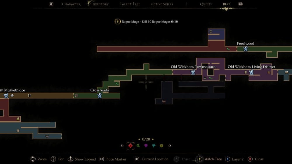 Exploration in Mandragora follows a Metroidvania-inspired progression system; make use of those map markers as you’ll want to revisit earlier areas with newly unlocked abilities to uncover hidden secrets. You get the staples from both Souls and Metroivanias; a jump, a ledge hang, a roll, a double jump, and also a grapple hook and a glide.